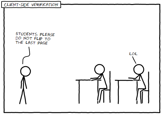 Verification in the web world can take place generally in two-forms, client-side and server-side. And making the wrong choice can lead to security bypasses and issues. Thus, it is important to understand this concept well, whether you wish to secure websites or break into them.